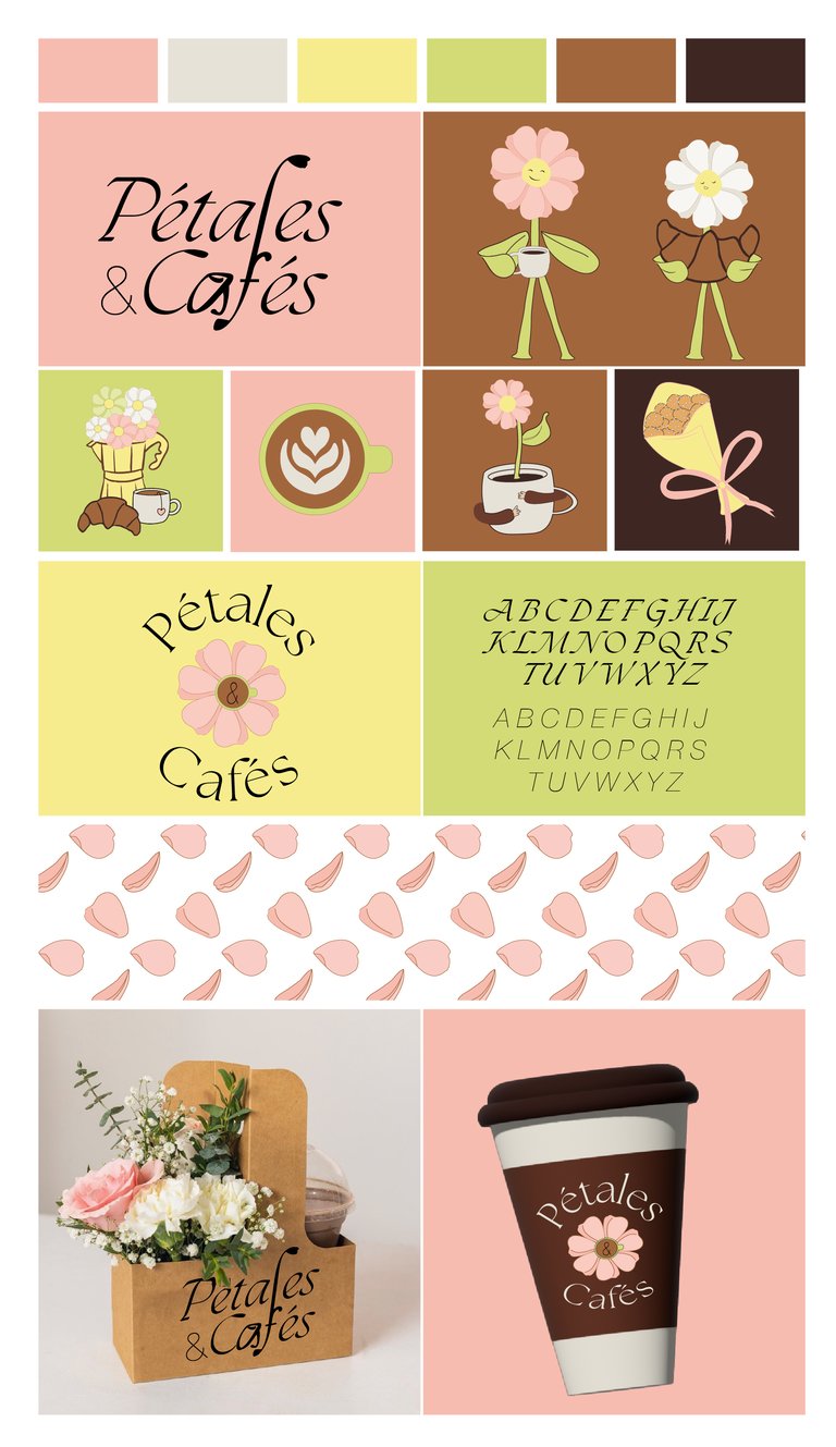 Un commerce proposant des services de café (cafés sur place, à emporter, viennoiseries, autres boissons non alcoolisées...) et de fleuriste (bouquets prêts à l’emploi, personnalisés...), me demande une identité graphique complète.